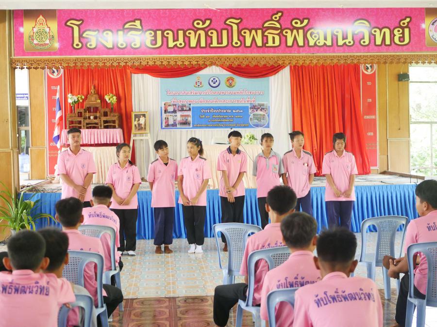 โรงเรียนทับโพธิ์พัฒนวิทย์ ครู บุคลากรทางการศึกษา นักเรียน ร่วมกับองค์การบริหารส่วนตำบลทับใหญ่ จัดโครงการส่งเสริมการบริโภคอาหารตามหลักโภชนาการ เพื่อสุขภาพอนามัยของเด็กและเยาวชนในพื้นที่ วันที่ 29 กันยายน 2563 ณ โรงเรียนทับโพธิ์พัฒนวิทย์ S:0